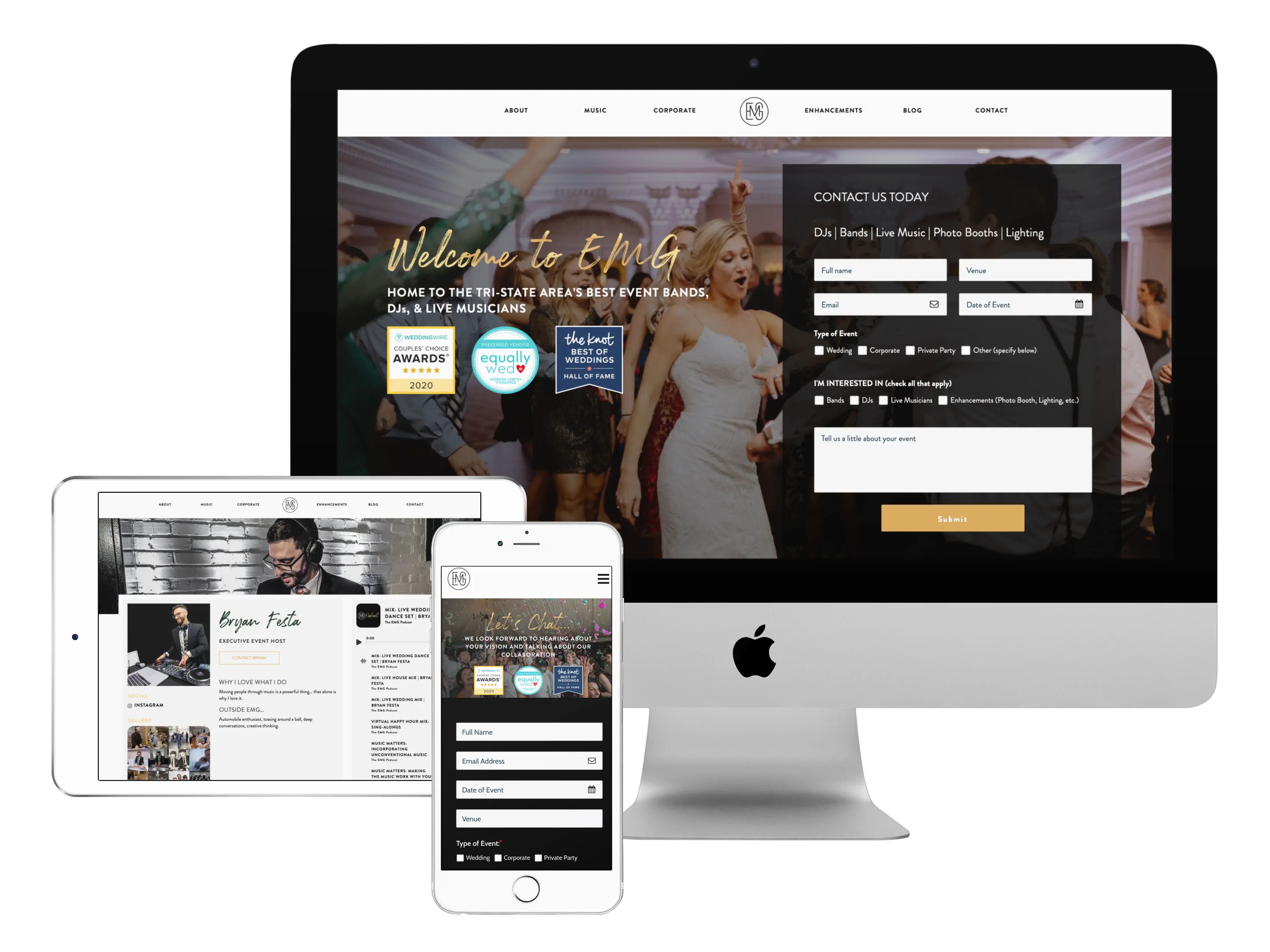 Elegant Music Group (EMG), a 30-year-old entertainment and event company, faced an identity crisis. Despite its longevity, the brand felt outdated and wasn’t connecting with younger, modern audiences. EMG needed a rebrand and digital overhaul to compete and grow market share.